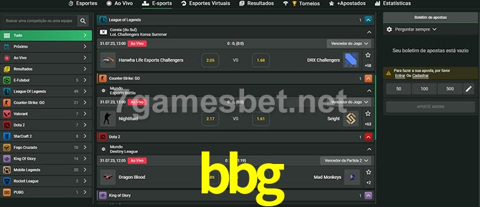 O bbg oferece uma grande seleção de opções de apostas em e-sports com probabilidades competitivas